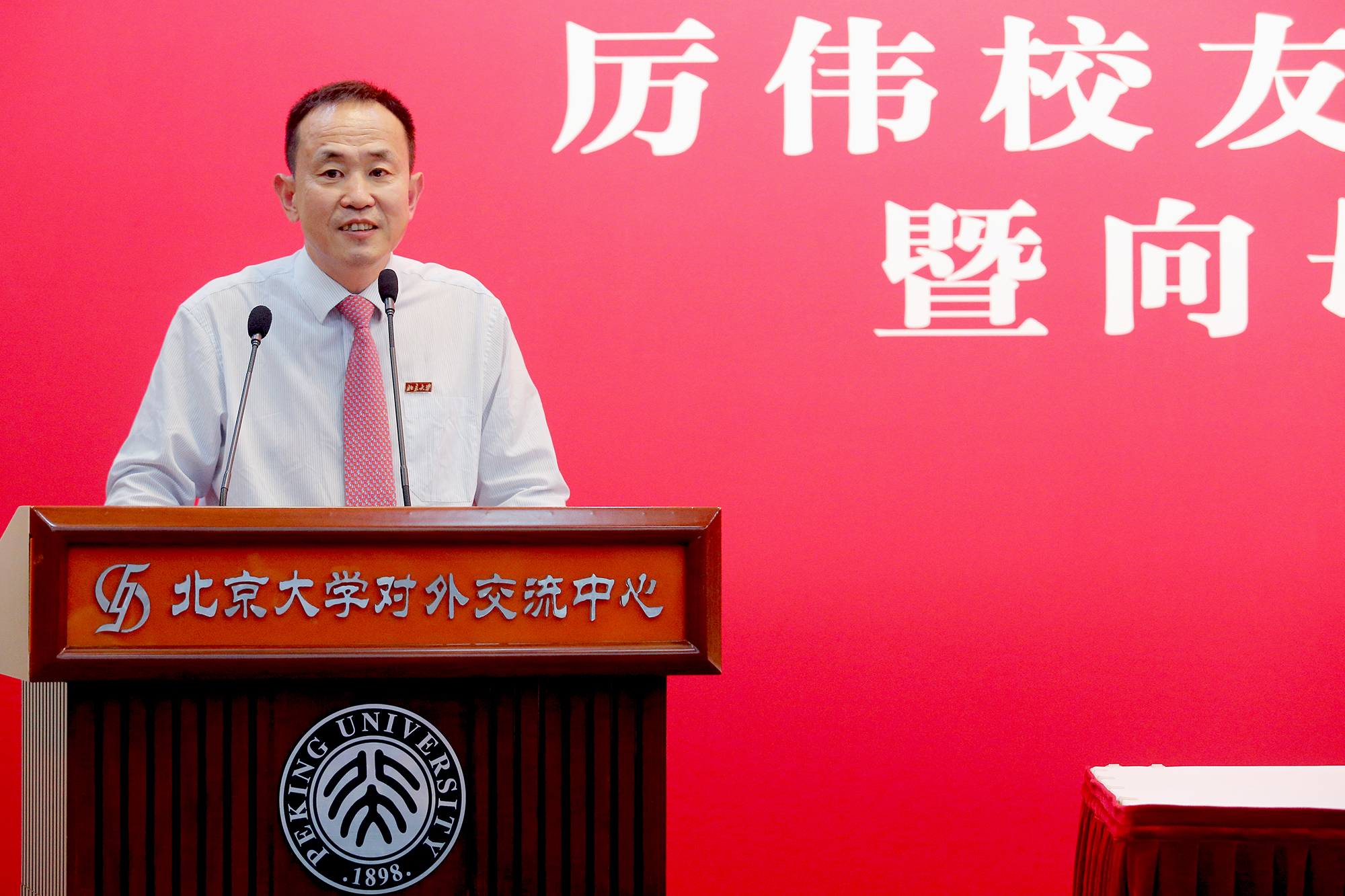 高毅勤院长代表学院向厉伟校友的慷慨捐助表示感谢,并简要介绍了化学学院新楼的建设意义和使用规划。新楼的建成将为化学学院的人才培养、科学研究提供硬件基础和发展空间,为北大化学学科的腾飞插上翅膀。