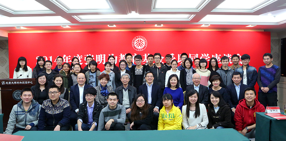 3月18日上午在英杰交流中心举行的2014年度北京大学张明为基金受助同学座谈会上,张明为老先生的外孙,泰昌祥集团主席顾建纲先生回顾张明为老先生历尽百年风雨,心系国家、教育和慈善的故事。在场来自十六个院系的三十多名受助学生一同聆听着老一辈的人生阅历和智慧。而他们,也只是北京大学这三年来受助的488名学生中的一部分。