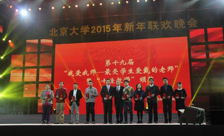 2014年12月31日,在邱德拔体育馆举行的北京大学2015年新年联欢晚会上,第十九届“我爱我师——最受学生爱戴的老师”暨“十佳教师”揭晓,朱善璐书记为辛勤工作在教学科研岗位上的老师们颁奖。此次评选活动得到了美国廖凯原基金会的鼎力支持。