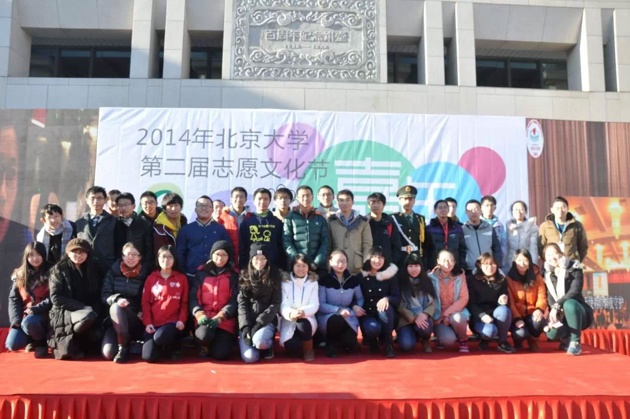 2014年12月5日,北京大学第二届志愿文化节在北京大学百周年纪念讲堂广场隆重举行。时值“国际促进经济和社会发展志愿人员日”(International Volunteer Day for Social and Economic Development,简称国际志愿人员日),为宣传志愿精神与志愿文化,北京大学学生会承办北京大学志愿文化节,吸引了25家社会公益组织参与活动,为北大校内学生志愿社团、热心公益的北大学生与社会公益组织搭建起沟通、交流的平台。