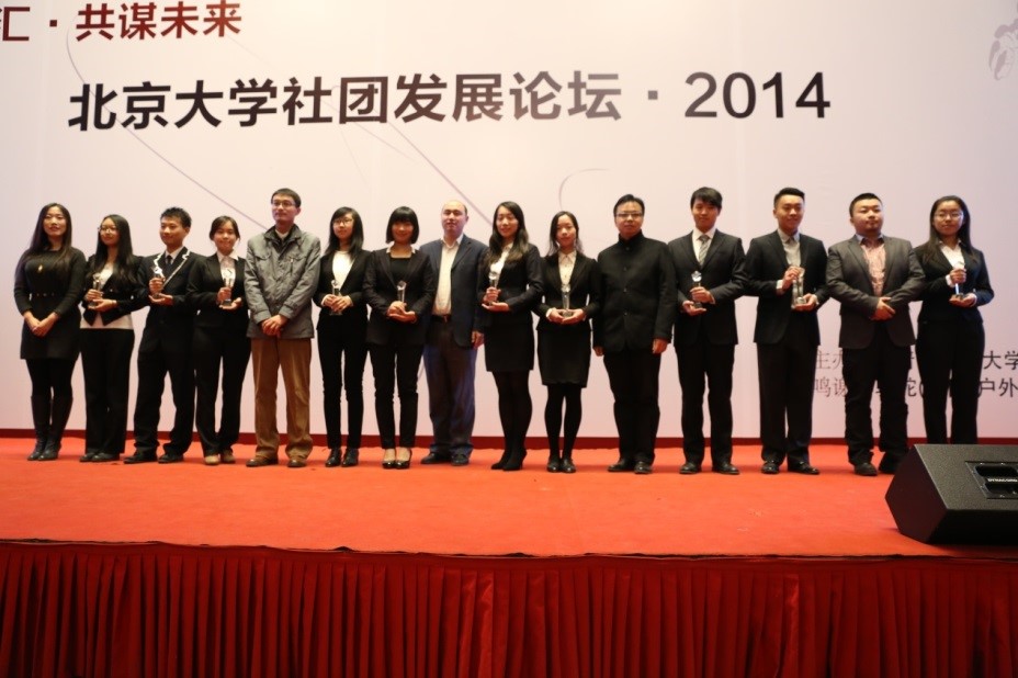 与会嘉宾揭晓了2013-2014学年社团评优表彰结果并为获奖社团颁奖。爱心社、自行车协会、山鹰社、中乐学社、阳光爱心诊所(医学部)凭借自身明晰的定位、良好的社会影响、富有特色的活动等获得“品牌社团”称号,北大剧社等十家社团获得“十佳社团”称号,法律援助协会等十家社团获得“新锐社团” 称号。