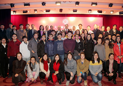 陶澍院长和俞孔坚院长也分别讲话。他们对捐赠人对学院的厚爱与支持表示感谢,认为这些支持不仅体现了海内外校友和社会各界有识之士对北京大学的信任和认可,更是面向未来,对国家民族长远可持续发展的深沉期待。他们表示将和学院师生一起,再接再厉,为中国的城镇化建设和可持续发展做出北大人应有的贡献。城市与环境学院陈诗弘同学代表两所学院的同学们表达了对新学院大楼的热切期待,并向捐赠人和社会各界的支持表示感谢。