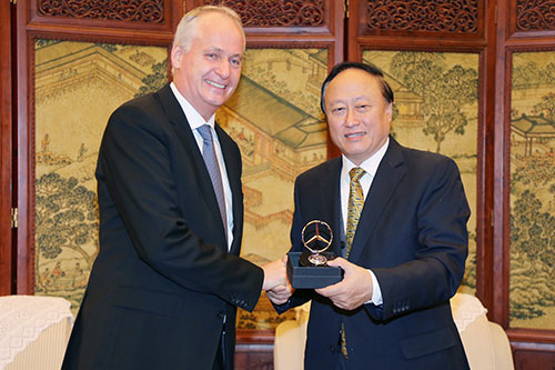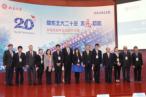 11月15日,“情系北大20年,不忘初心”——奔驰奖助学金20周年庆典在北京大学隆重举行。戴姆勒股份公司董事、戴姆勒大中华区投资有限公司董事长兼首席执行官唐仕凯(Hubertus Troska)先生、戴姆勒股份公司副总裁冯凯德(Eckart von Klaeden)先生一行来到北大出席庆典。北京大学党委书记、校务委员会主任朱善璐,党委副书记、校务委员会副主任叶静漪,副校长陈十一,校长助理、教育基金会秘书长邓娅等师生代表共同参加了活动。
