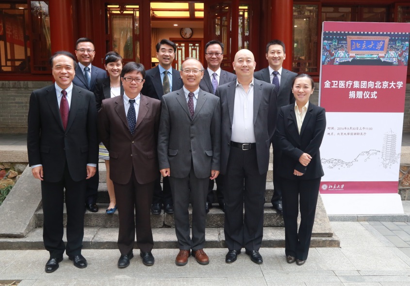 9月30日,正值六十五周年国庆前夕,金卫医疗集团在未名湖畔的临湖轩宣布向北京大学捐资设立“北京大学金卫国际交流基金”,为北大师生参与国际大学组织提供资助。王恩哥校长和金卫医疗集团董事局主席兼首席执行官甘源先生代表双方共同签署捐赠协议。仪式由李岩松副校长主持。