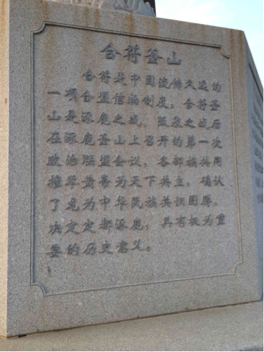 黄帝城内中华合符坛的石碑上记载着现代中华文化共同体于轩辕元年(4711年前)的建立。