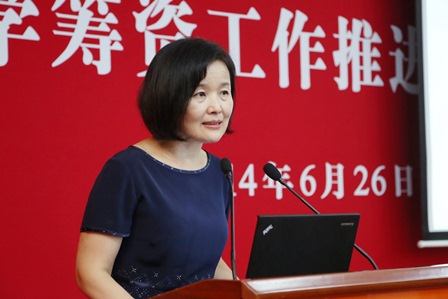 校长助理、教育基金会秘书长邓娅详细介绍了学校筹资规划的具体内容,并就在下一阶段基金会与院系如何齐心协力配合协调开展筹资工作进行了说明。