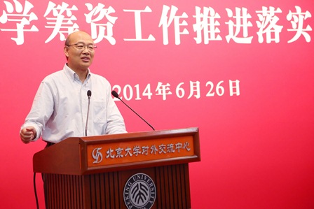 6月26日下午,北京大学筹资工作推进落实座谈会在陈守仁国际研究中心新闻发布厅召开。党委书记、教育基金会理事长朱善璐,校长王恩哥,常务副校长吴志攀、柯杨、刘伟,副书记叶静漪,副校长李岩松、王仰麟,总会计师闫敏出席会议。学校筹资发展委员会委员,各院系党政主要负责人、职能部门、直属附属单位主要负责人参加会议。会议由吴志攀主持。