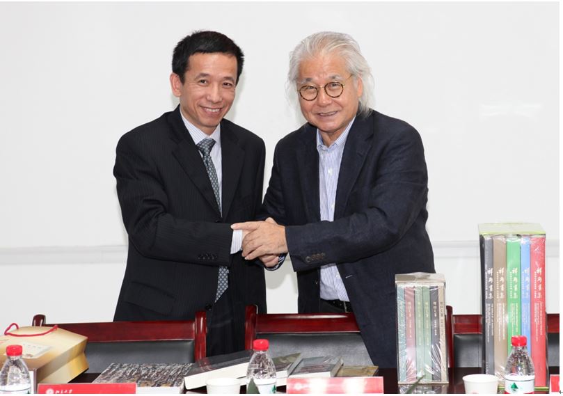 最后,双方互赠礼品。艺术学院向林先生赠送了由名誉院长、资深教授叶朗先生亲笔签名的一系列文化读本。林祥雄先生向艺术学院赠送了自己二十多年来的文字作品汇集。双方都期待着未来能有更进一步的发展与合作。
