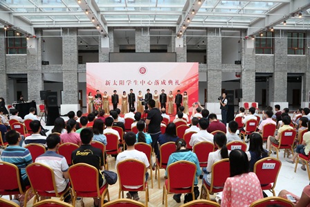 嘉宾与校领导共同为新太阳学生中心剪彩
