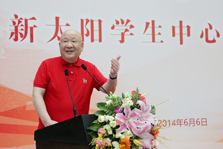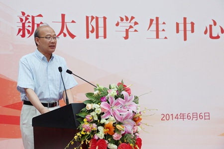 仪式在北京大学民乐团演奏的《花好月圆》中拉开帷幕,王恩哥首先致辞。他高度赞扬了李晓东董事长对祖国、对家乡的赤子情怀和高度的社会责任感,并代表学校向新太阳集团捐资兴学的善举表示衷心的感谢。他强调,新太阳学生中心的兴建使学校长期以来的构想成为现实,它将成为北大学子学习和文化活动的“一站式”服务集聚地和学生事务的管理中枢,为同学们全面成才提供更加有利的条件。王恩哥还阐释了“新太阳”的涵义,并寄语全校师生自觉践行社会主义核心价值观,担负起时代赋予的责任,创造一个“有信念、有梦想、有奋斗、有奉献”的精彩人生。