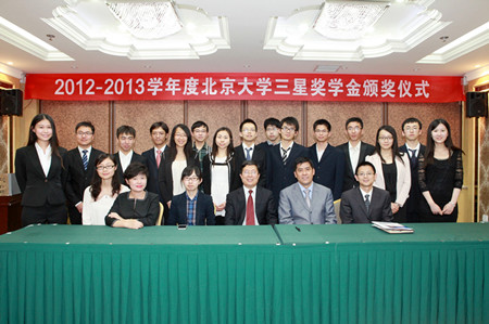 2014年4月30日, 2012—2013学年度北京大学三星奖学金颁奖仪式在英杰交流中心举行。三星电子大中华区移动通信事业部执行副总裁王彤、人力资源部经理张爱敬,北京大学党委副书记叶静漪、学生工作部部长张庆东、教育基金会副秘书长赵文莉、学生工作部副部长刘德英出席会谈及颁奖仪式。