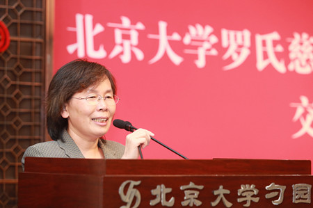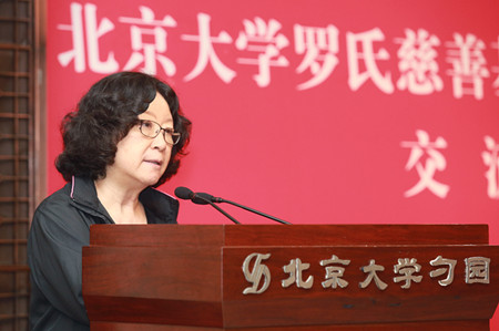 叶静漪副书记首先致辞,向罗氏慈善基金嘉宾一行来访表示热烈欢迎。她表示,罗氏慈善基金一直以“扶贫济困、助学兴教”为宗旨,在生活上出资支持家庭经济困难的学生完成学业的同时,也十分关心学生的个人成长,支持受助学生开展体育锻炼、参与公益服务、提升个人能力。叶书记与嘉宾和同学们分享了寒假期间在台湾的所见所感,评价罗定邦励志奖学金是众多奖助学金中最有意义、最有特色的项目之一。叶书记在致辞中向罗氏慈善基金对北大人才培养事业的鼎力支持表示诚挚的感谢,感谢罗氏慈善基金为受助学生带来了春天般的温暖,同时鼓励获助学子努力学习、健康成长,成为国家有用之才。