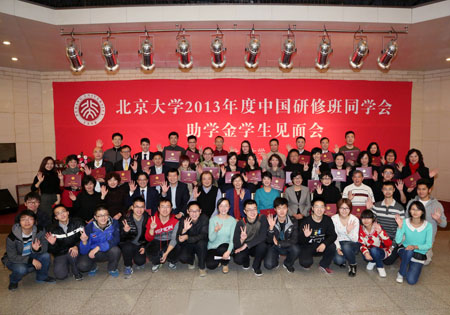 元培学院本科生崔家诚代表受助学生发言,他抒发了对中国研修班同学会学长们的感激之情,并表示自己希望向学长一样成才并回馈母校、奉献社会。