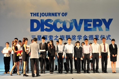 2013年6月1日,“2013年三星探索之旅暨奖学金颁发仪式”在北京大学举行,来自北京大学、清华大学、中国人民大学、北京航空航天大学、北京邮电大学和中国政法大学等六所高校的大学生欢聚在英杰交流中心。中国三星首席技术官、高级副总裁、北京三星通信研究院院长王彤,中国三星首席财务官、三星电子大中华区高级副总裁金炳均,三星电子大中华区人力资源副总裁安宰宇,三星电子(美国)北美研发中心首席研究员、博士Pranav Mistry,北京大学党委副书记叶静漪,北京大学校长助理、教育基金会秘书长邓娅,北京大学学生工作部、人民武装部部长张庆东等嘉宾出席了活动,向北京地区六所重点大学的107名优秀学生颁发了三星奖学金,并与500名高校学子一同畅谈最新科技的发展趋势。