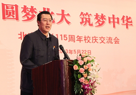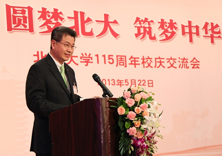 5月22日下午,北京大学115周年校庆交流会隆重举行,北京大学党委书记朱善璐教授,校长王恩哥院士,常务副书记、副校长张彦教授,常务副校长柯杨教授,校长助理邓娅、马化祥等学校领导及各院系负责人,与来自全国各地的各界友人共200余人齐聚一堂,畅叙情谊。