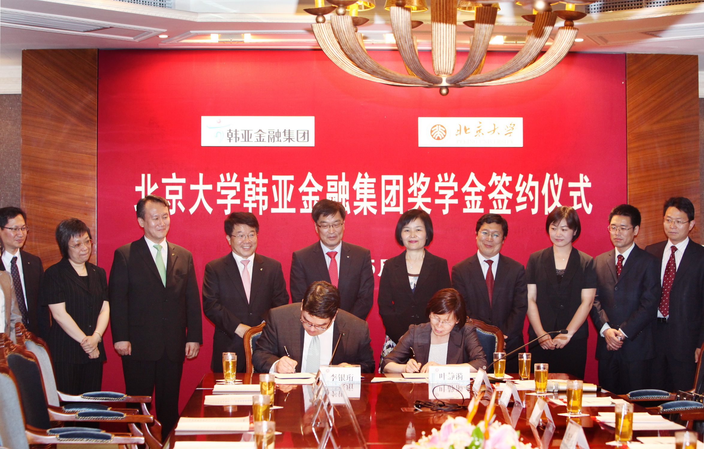 韩亚金融集团是韩国第四大金融集团,在全球拥有众多分支机构和营业网点,连续八年在韩国被评为最佳私人银行。此次韩亚金融集团捐赠100万元在北京大学设立奖学金,重点奖励来自经济学院、法学院、外国语学院、国际关系学院、光华管理学院的优秀学子。