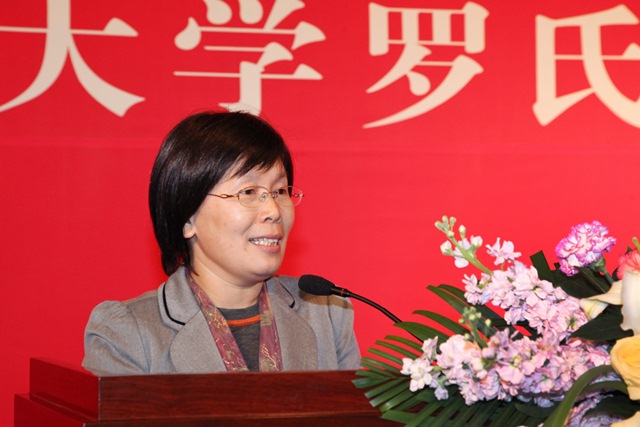 北京大学党委副书记叶静漪在致辞中向罗氏慈善基金嘉宾一行的来访表示热烈欢迎。她表示,罗氏慈善基金一直以“扶贫济困、助学兴教”为宗旨,在出资支持北大家庭经济困难学子完成学业的同时,更加注重受助学生的全面发展,为学生带来公益理念和社会责任。她向罗氏慈善基金对北大人才培养事业的鼎力支持表示诚挚的感谢,并鼓励获助学子长存鸿鹄之志,常怀感恩之心,开创辉煌的人生,成为国家有用之才。