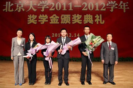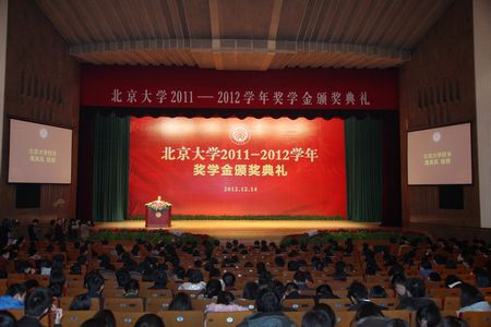 12月14日下午,北京大学2011-2012学年度奖学金颁奖典礼在百周年纪念讲堂举行。北大之友(香港)有限公司董事崔劲中,方正集团副总裁兼首席品牌官魏亚欧,汉能投资集团董事长陈宏博士,李彦宏回报基金代表汤立,中国工商银行股份有限公司投行业务总监莫扶民等捐赠单位代表专程来到北京大学出席此次颁奖典礼。全国学生资助管理中心副主任马建斌,北京大学校长周其凤,党委常务副书记、副校长张彦,常务副校长吴志攀,党委副书记叶静漪,研究生院院长陈十一,校长助理、基金会秘书长邓娅及获奖学生代表参加颁奖典礼。典礼由吴志攀主持。