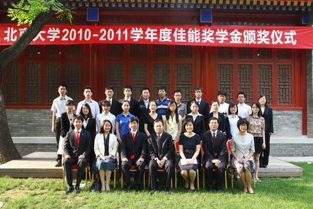 2011年,我校共评出2010-2011学年度佳能奖学金获得者20名,分别来自数学科学学院、物理学院、化学与分子工程学院、哲学系、信息管理系、社会学系、外国语学院、信息科学技术学院、城市与环境学院、环境科学与工程学院10个学院,其中,博士生5名,硕士生5名,本科生10名。奖金总额10万元人民币。