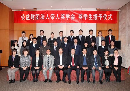3月19日,公益财团法人帝人奖学会授予仪式在北大博雅国际酒店会议中心举行。帝人集团中国总代表山本泉,帝人奖学会事务局局长藤本治己,中国教育发展基金会副秘书长陈希原,北京大学校长助理、教育基金会秘书长邓娅,清华大学教育基金会副理事长黄建华,北京大学学生资助中心主任杨爱民等出席了此次颁奖仪式。