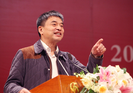 在大家的热烈掌声中,刘永好登上讲台发表演讲。他首先回顾了与北大的渊源,特别是与厉以宁、林毅夫、吴志攀、俞孔坚等北大教授在推动“非公”经济发展、研究三农问题、组建民生银行、参与成渝统筹城乡综合配套改革试验区建设等问题上的合作,感谢北大对企业的支持。他简要回顾了自己从“鹌鹑大王”、“饲料大王”逐渐发展壮大企业的历程,讲述了集团为建立规范、安全、高效的农牧产业链所做出的种种努力,以及未来在保护食品安全方面的构想。刘永好表示:“今天,中国农牧产业的转折点到来了!”他说:新希望集团目前已经达到了世界级农牧企业初级标准,希望通过十年的努力达到高级标准。他希望能有一大批优秀人才加入企业,与中国民营企业共进步,与中国经济共进步。刘永好先生热情洋溢的演讲感染了现场每一位学子,频频获得热烈的掌声。