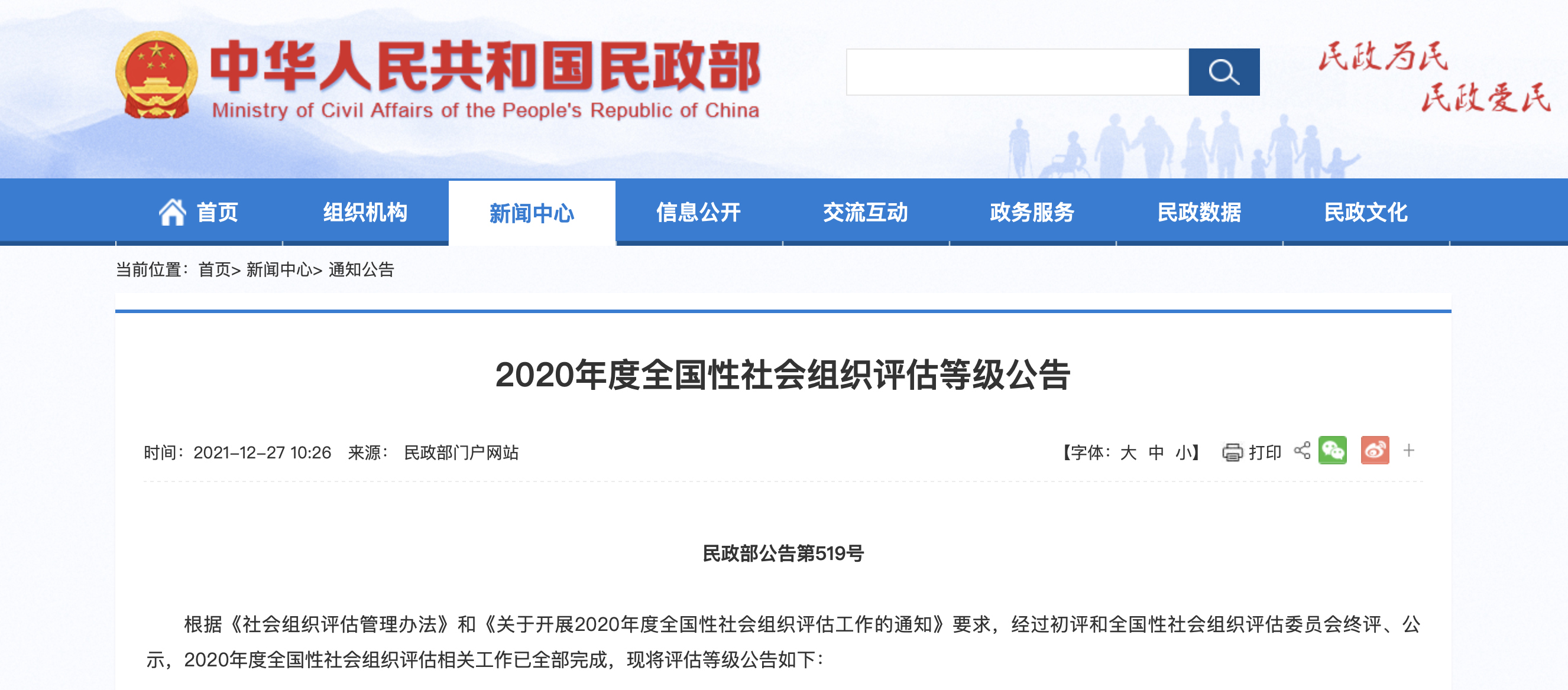 点击查看:《2020年度全国性社会组织评估等级公告》
