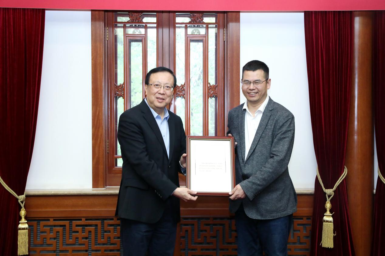 在全场热烈的掌声中,邵根伙、刘春明、李宇宁共同签署捐赠协议。许智宏为邵根伙颁发现代农学院耕读书院导师聘书。