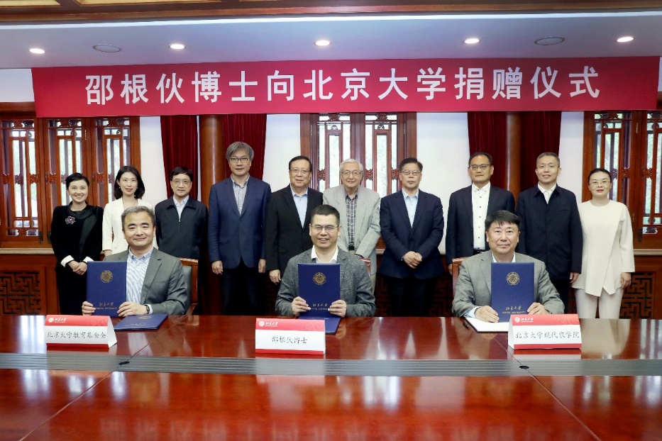 4月29日,在北京大学建校124周年即将到来之际,邵根伙博士向北京大学捐赠仪式在北京大学临湖轩举行。大北农国际集团董事长邵根伙捐资设立北京大学大北农现代农学发展基金,支持北京大学现代农学院教育事业发展。