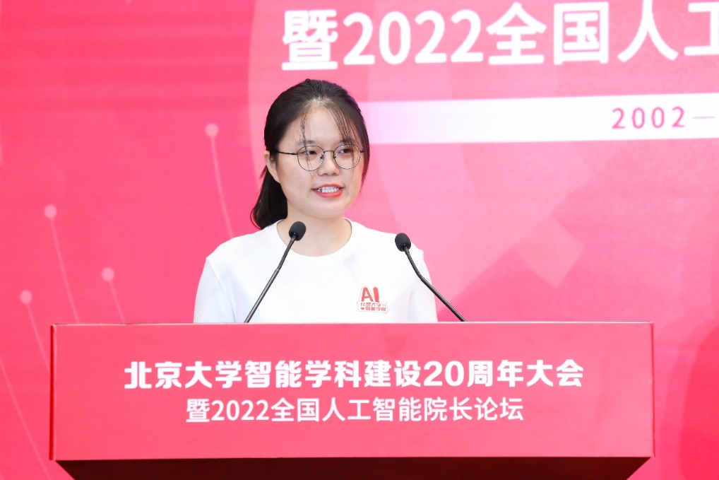 北京大学学生代表韩佳衡表达了对北大智能学科的深切热爱与真挚感恩。她号召同学们求真学问、练真本领,扛起北大智能学科发展的责任,书写新的智能华章。