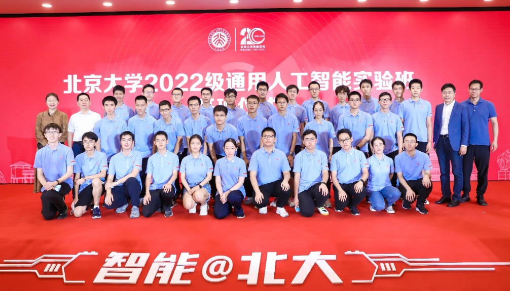 大会还同时举行了北京大学2022级通用人工智能实验班开班仪式和北京大学2022级智能科学与技术实验班开班仪式。同学们登台领取徽章和纪念品,代表着扛起新一代北大智能人的光荣使命。