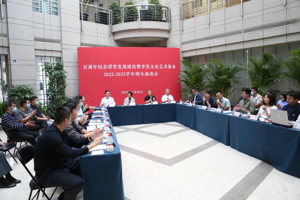 座谈会上,会议中心原副主任、讲堂管理部原主任刘寿安介绍了李莹文化艺术基金筹备、设立和落地实施的过程;教育基金会副秘书长耿姝对李莹校友多年来支持母校发展建设进行了回顾;学生资助中心主任刘海骅介绍了将美育融入发展型学生资助的新思路新举措;外国语学院党委副书记王恒介绍了在李莹校友支持下学院育人工作取得成果。他们表示,讲堂作为文化平台和育人阵地,面向学生进行艺术普及,给同学们提供了广阔的实践平台,发挥了塑造心灵、完善人格的积极作用。