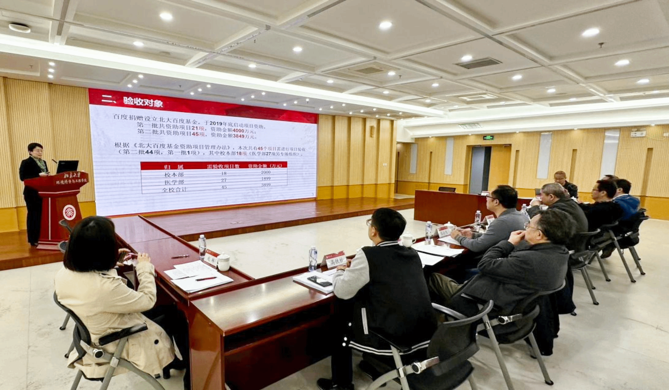 验收会上,詹启敏和谢冰回顾了北大百度基金的设置初衷和发展历程,对第二批资助项目的验收工作提出要求和期望。科研部部长助理范少锋介绍了验收会的具体流程和评审要求。专家组成员认真听取了各个项目关于任务进展、指标完成、成果应用、组织管理、人才培养和经费决算等情况的汇报,依次进行质询并展开综合评议。专家组对北大百度基金第二批资助项目的执行效果给予高度评价,一致同意45个项目均通过验收。