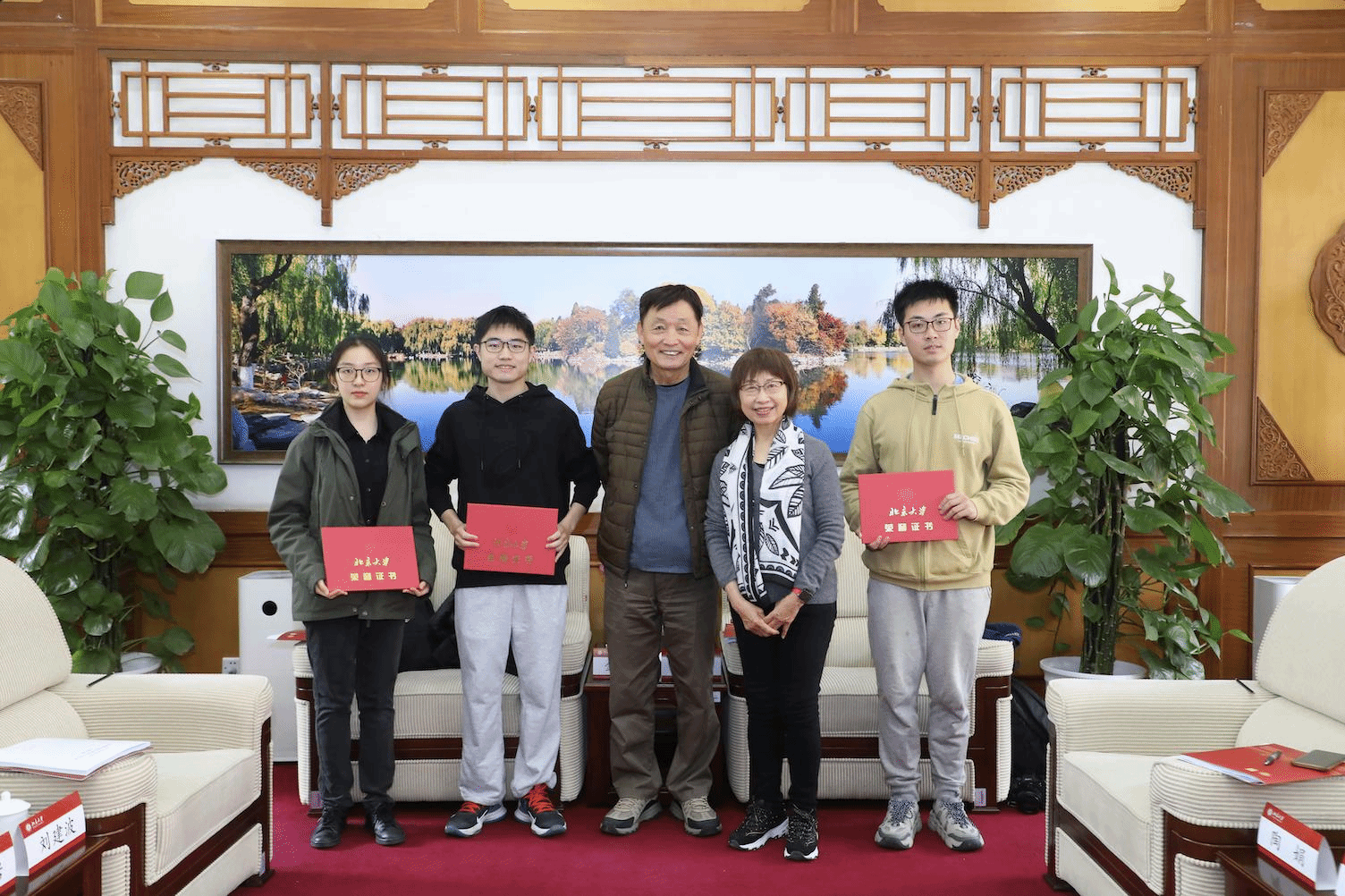 4月21日,金德立、马航年伉俪及其子马千里一行访问北京大学,与其捐赠设立的多项奖学金项目的获奖学生代表展开亲切交流,鼓励北大学子传承和弘扬中华传统文化。