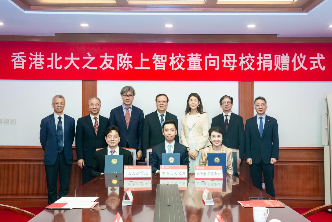 陈上智,北京大学党委书记、教育基金会理事长郝平,副校长、教务长、教育基金会副理事长王博等共同出席捐赠仪式。北京大学港澳研究院名誉院长饶戈平主持仪式。