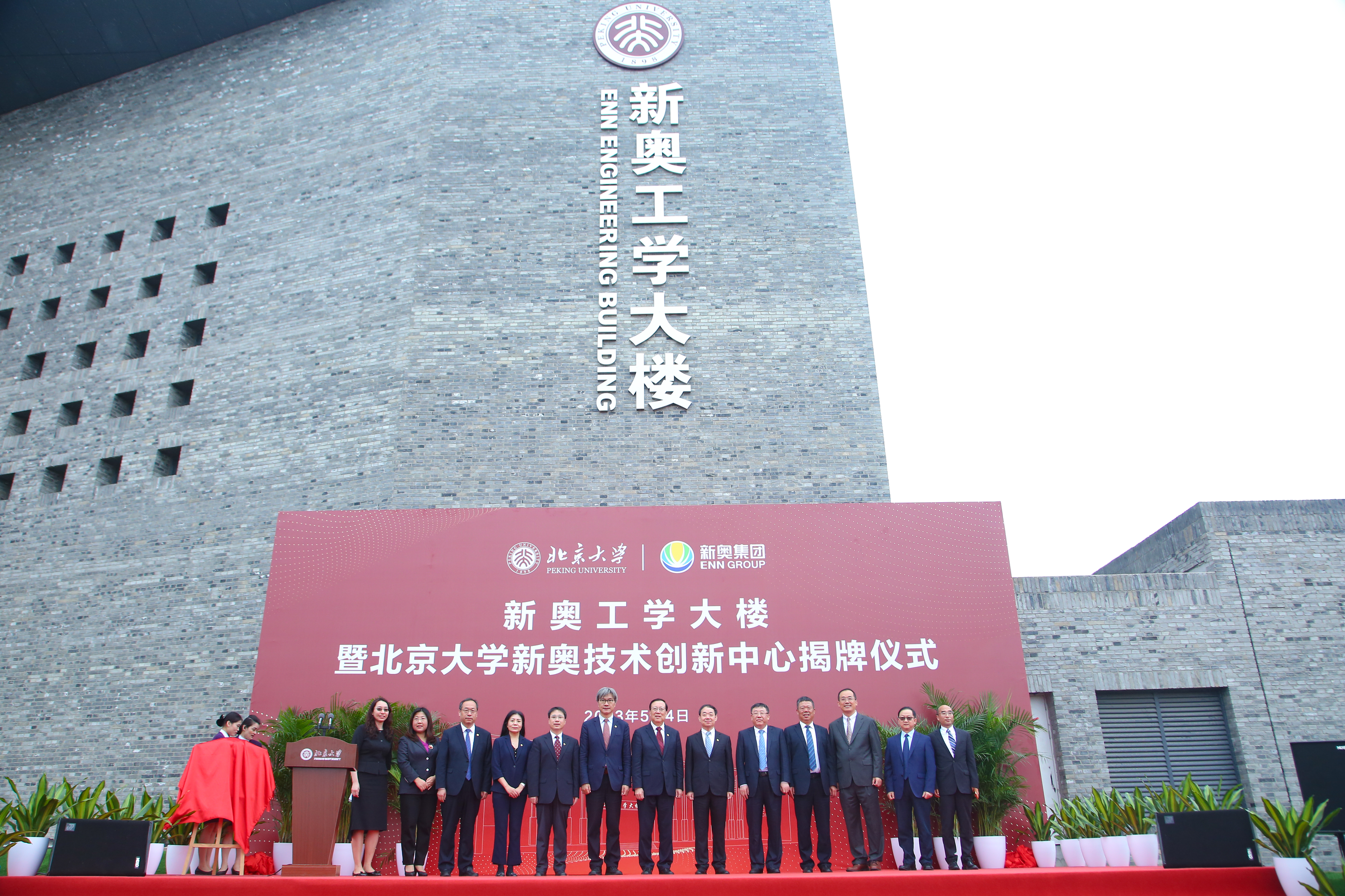 合作协议签署后,新奥工学大楼揭幕暨北京大学新奥技术创新中心揭牌仪式在新奥工学大楼前举行。宋洁主持仪式。