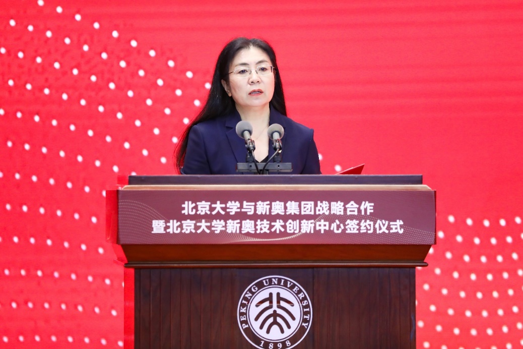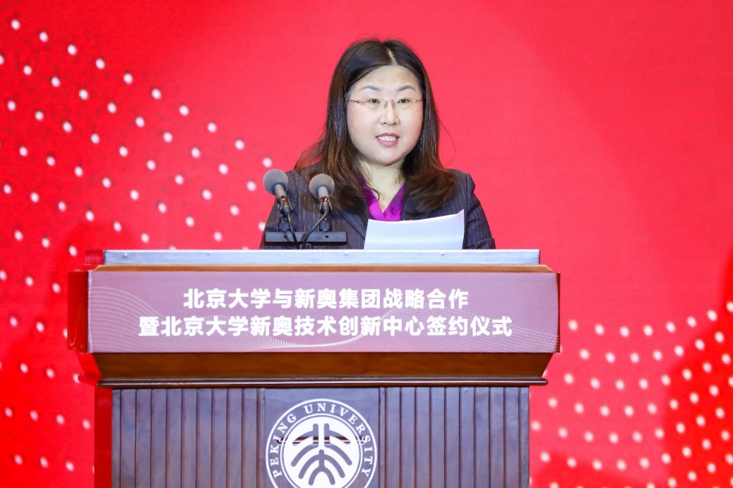 北京大学与新奥集团战略合作协议签约仪式在英杰交流中心阳光厅举行,宁琦主持仪式。张锦、王玉锁、段慧玲分别致辞。
