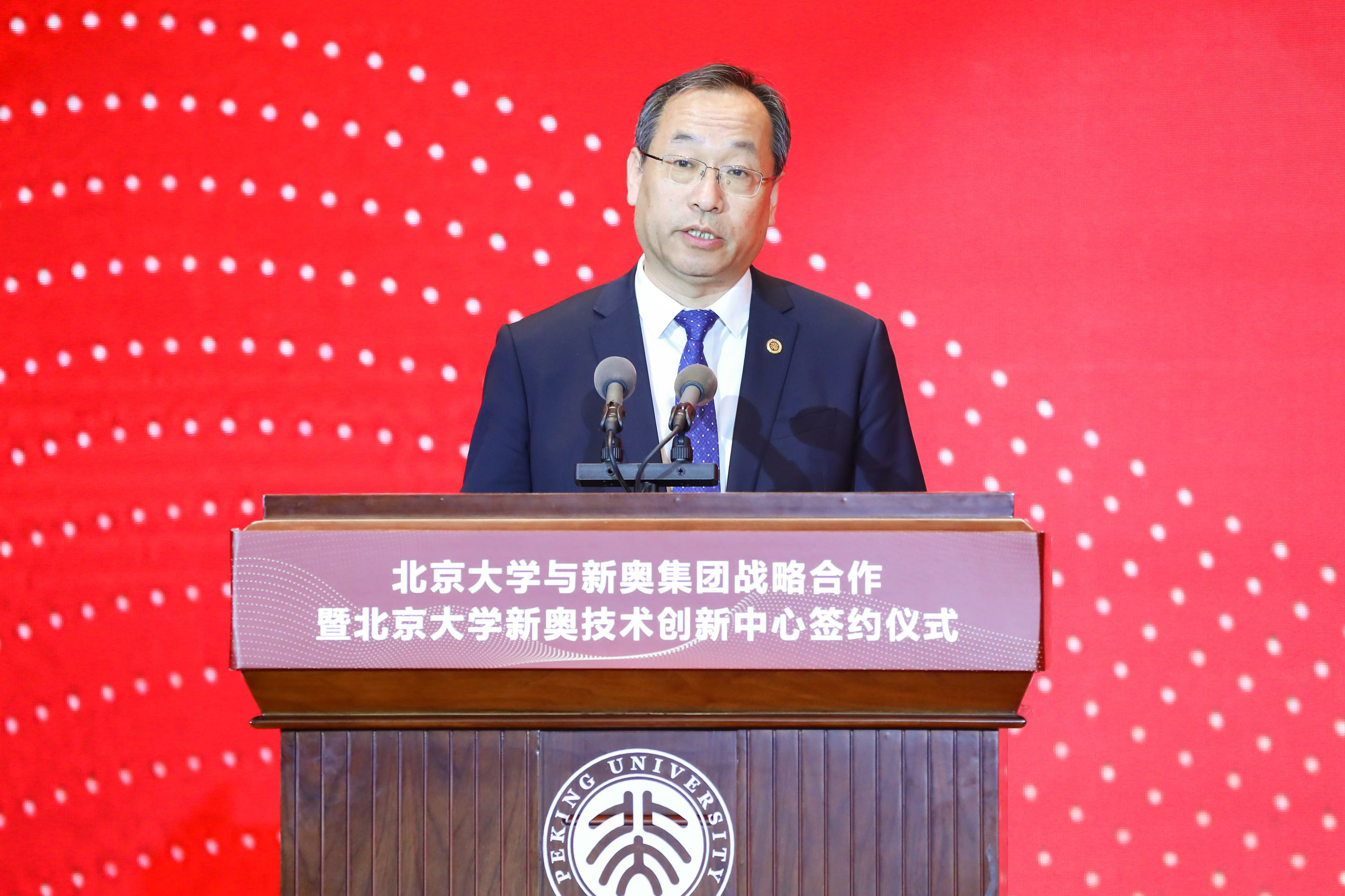 王玉锁在致辞中对北大建校125周年表示祝贺,对北大在这125年里为国家建设和社会进步培养大量人才、作出重要贡献表示钦佩。他表示,北京大学的教学科研理念、创新发展模式与新奥集团的企业发展方向高度契合。新奥集团有意愿、有责任为北京大学的教学、科研工作提供帮助与支持,新奥工学大楼的落成,让新奥集团的心意变为现实。他希望双方通过继续合作,助力北大通过产学研融合引领新工科发展,在基础研究和核心技术突破上取得新的成果,为解决“卡脖子”问题、助力中国式现代化建设作出新的贡献。
