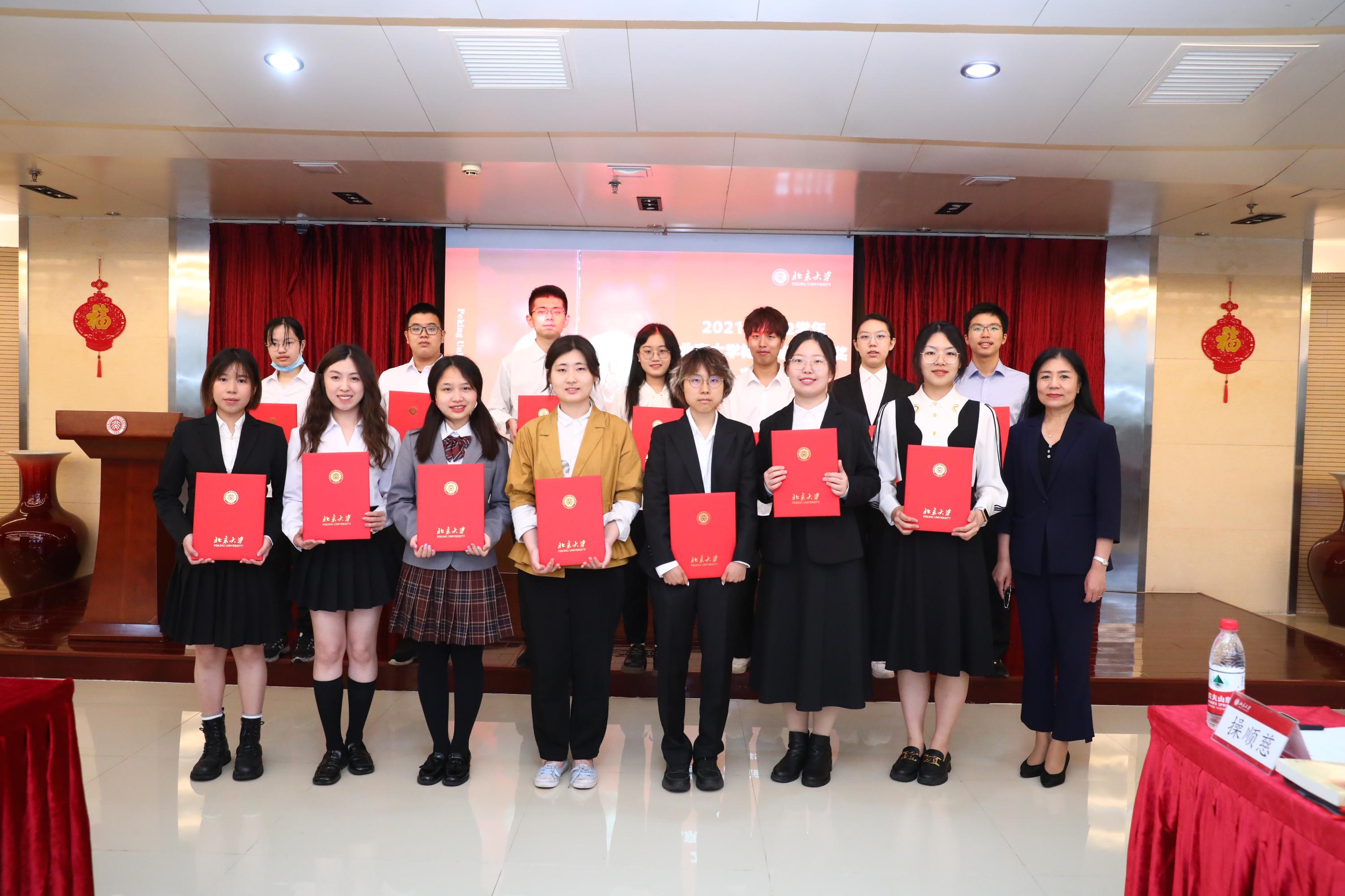 5月19日下午,2021—2022学年北京大学杨辛荷花品德奖颁奖仪式在万柳学区多功能厅举行。北京大学党委副书记、副校长宁琦出席仪式,关心下一代工作委员会立德树人教育基地主任赵桂莲,学生工作部部长、校团委书记户国栋,离退休工作部部长、关心下一代工作委员会秘书长马春英,公寓服务中心主任、特殊用房中心主任(兼)李杨,教育基金会副秘书长王勇,公寓服务中心副主任、特殊用房中心副主任(兼)王太芹,以及2021—2022学年获奖学生参加。颁奖仪式由学生工作部副部长王欣涛主持。