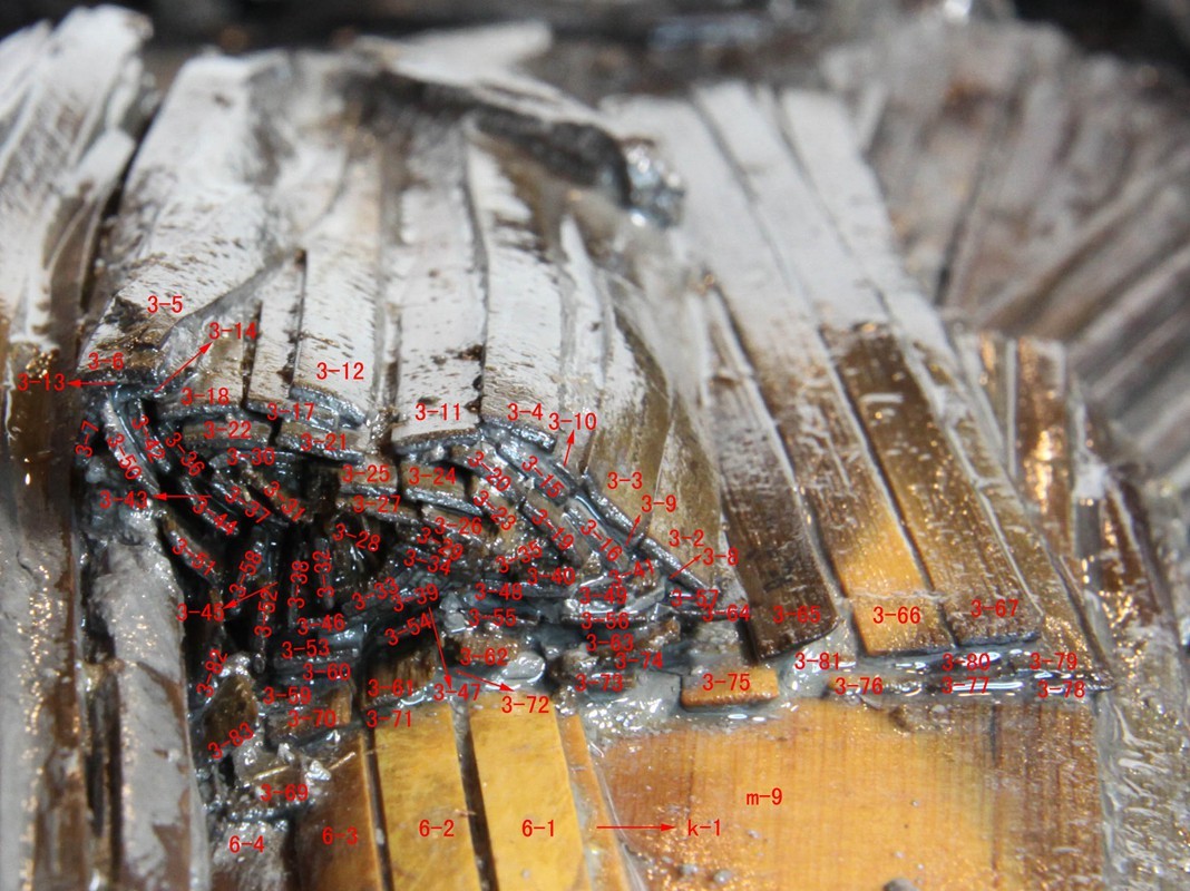 图二:北京大学藏秦简室内发掘分层揭取的编号