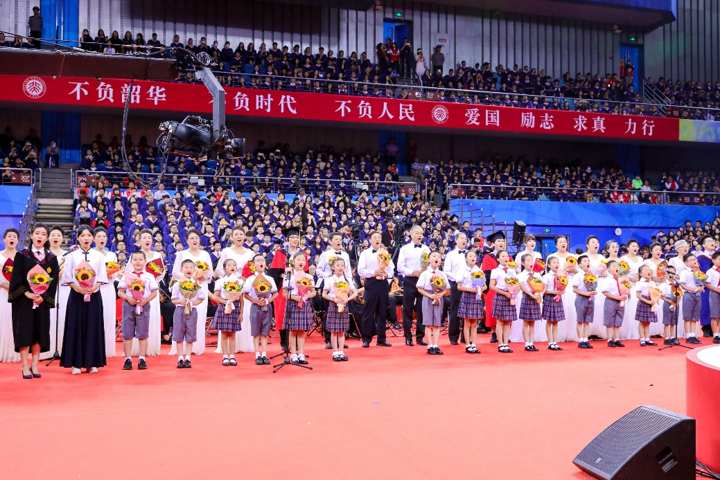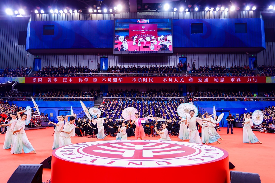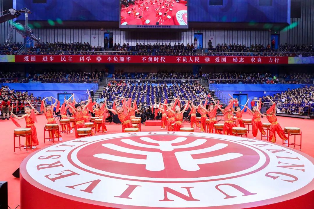 歌声振人心,鼓点引征程。在暖场表演环节中,由北京大学学生代表和附属幼儿园学生代表带来的创意编排《鼓韵·不怕不怕》引起了观众的阵阵喝彩;由北京大学学生交响乐团和附属中学管乐团带来的《瑶族舞曲》洋溢着欢快的民族舞曲色彩;由毕业生代表和在校生代表联袂演出的毕业祝福歌曲联唱,唱出了同学们对母校和师友的祝福与不舍;由北京大学学生舞蹈团毕业生代表带来的舞蹈《雨忆季夏》仿佛将时光定格在微风阵阵的未名湖畔,难言夏季的离别;由附属幼儿园、附属小学、教工合唱团共同唱响的《我和我的祖国》,表达了北大师生的爱国情怀。