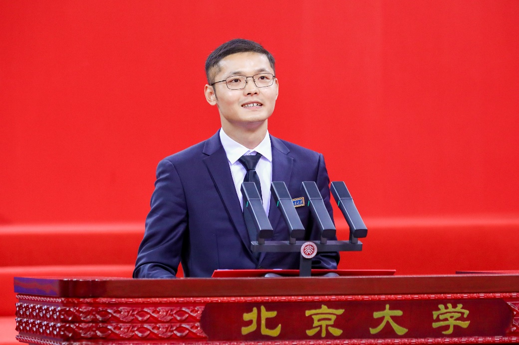 毕业生代表集成电路学院2018级博士研究生杨凌濛讲述了他从“博士生”到“博士”的蜕变。在北大他去掉了生疏、收获了娴熟,去掉了生涩、收获了成长;去掉了生硬,收获了柔和。他说道,“常为新”的北大见证了无数学子在不同领域里用自己的“心血”践行着“为新”的使命。杨凌濛代表毕业生请母校放心,无论身在何处,从事何种职业,他们都必将坚守北大人“爱国、进步、民主、科学”的精神,用心写好新时代的中国故事。