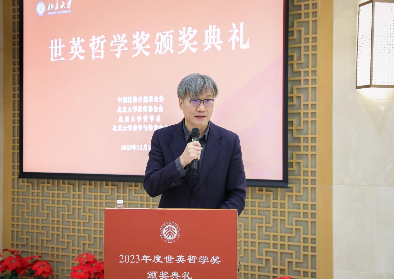 “世英哲学奖”的评审和相关工作一直得到北京大学校领导的关心和指导,也得到北京大学教育基金会的大力支持。在工作委员会宣布获奖名单之后,王博发表致辞。王博回顾了“世英哲学奖” 的设立过程和学术初衷,着重强调了这一奖项的独特学术价值观,并对所有获奖学者表示热烈祝贺。他指出,“世英哲学奖”应该成为推动哲学学术发展、学科体系和原创思想发展的重要力量,并以此提升哲学思想的社会影响力。