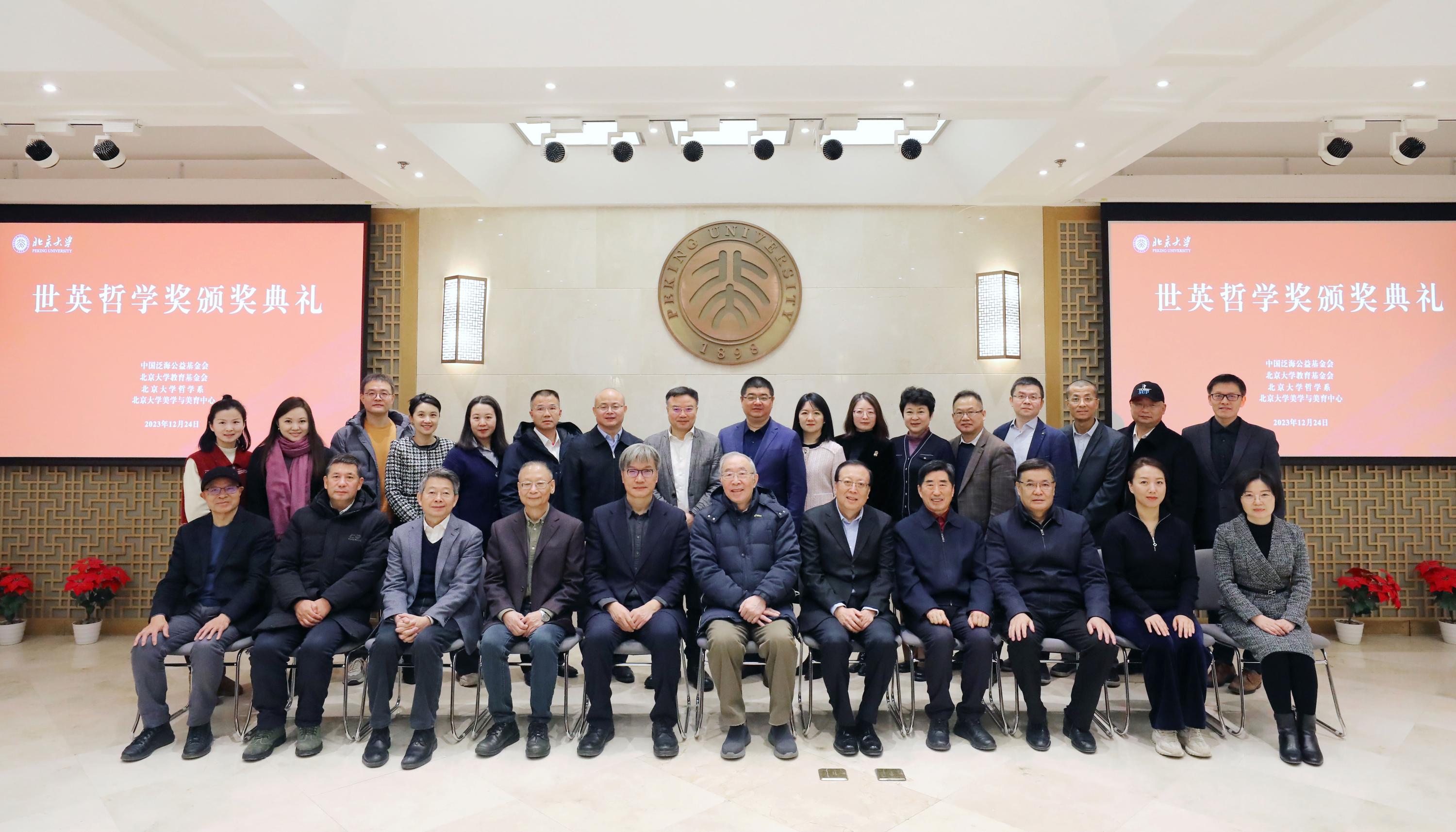12月24日,2023年度世英哲学奖颁奖典礼在北京大学教育基金会报告厅举行。北京大学党委书记郝平教授,党委常委、副校长、教务长王博教授,文科资深教授、著名美学家叶朗先生等亲临颁奖典礼。来自中国泛海公益基金会、北京大学教育基金会、北京大学哲学系、北京大学艺术学院的嘉宾,以及著名哲学家、美学家张世英先生哲嗣张晓崧先生,张世英先生后学故交、先生家乡张世英书院代表一起参加了颁奖典礼。
