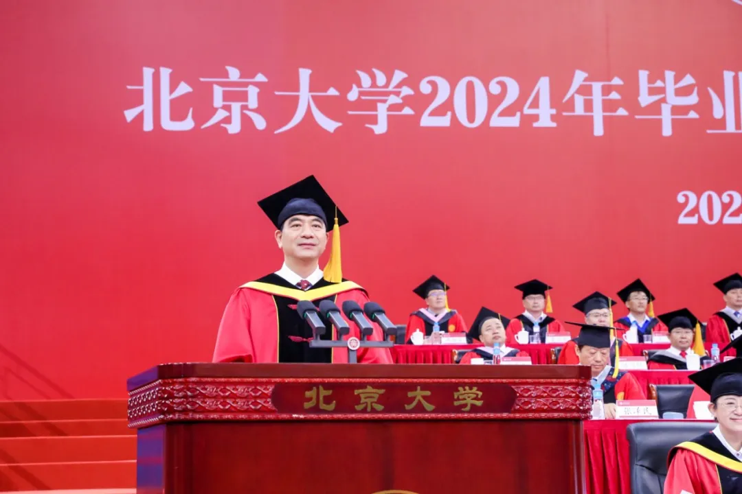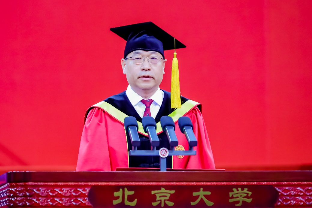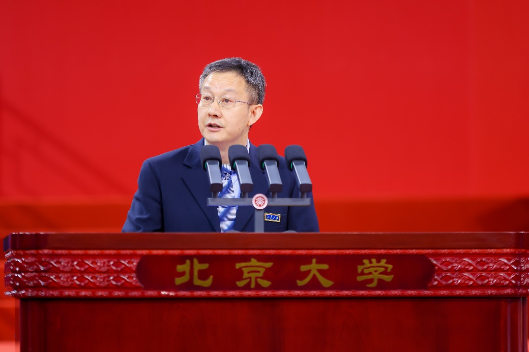 他向大家提出三点希望:第一,重视基础,助力创新。他希望大家向老一辈科学家学习,牢记他们的谆谆教诲,向深处扎根,甘坐科研“冷板凳”,勇闯学术“无人区”,探索未知的奥秘,以扎实的基础研究来解决社会的新问题、新需求,用大家的探索精神和创新活力为国家发展塑造新动能新优势;第二,跨界融通,拓宽视野。他希望大家不论身在何地,都要用好在北大培养的跨学科思维,在面对纷繁多变的社会现象时,以多元立体的视角进行审视,勇于提出自己的见解,让奋进的道路越走越宽广,在时代大潮中成就有价值的人生;第三,超越自我,追求卓越。他希望大家带着母校给大家的精神滋养,以追求卓越的标准认真做好每一项工作,在看似平凡的岗位上做出不凡的业绩。