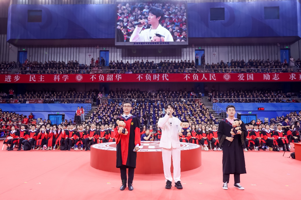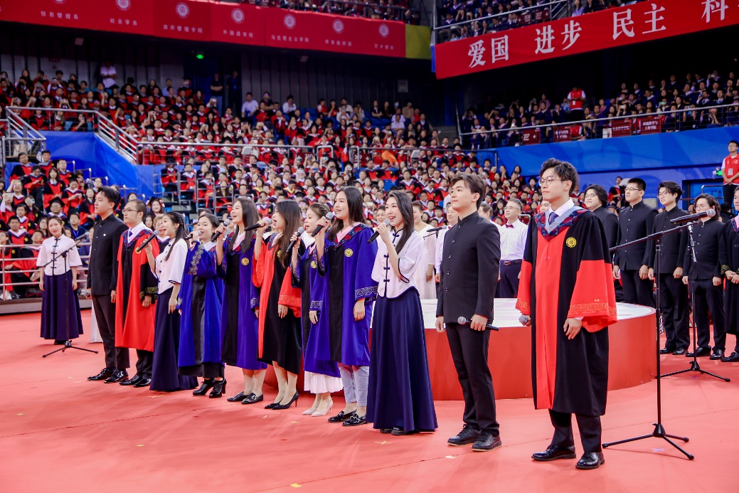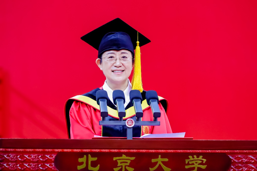 离别之际,作为校长和校学位评定委员会主席,龚旗煌向所有毕业生表达了祝贺,他表示,回首在北大的点点滴滴,同学们收获了成长,留下了最美好的青春记忆;北大也因大家而充满了青春的活力,谱写了精彩的发展篇章。从五四时期的振臂呐喊,到改革开放初期的“团结起来、振兴中华”,再到新时代“请党放心、强国有我”的铿锵誓言,每一代北大青年都挺立在时代的潮头,勇担起历史的重任。
