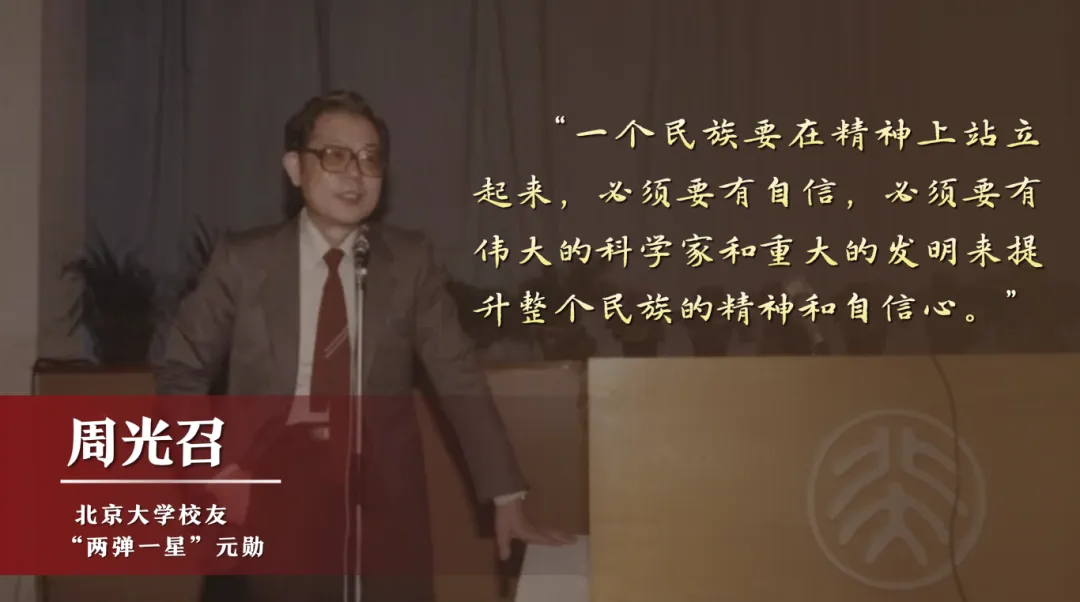 在23位“两弹一星”元勋中,有12位北大校友,他们为推动国家科技发展、民族自立自强作出了彪炳史册的贡献。刚刚离开我们的老学长、“两弹一星”元勋周光召先生曾说:“一个民族要在精神上站立起来,必须要有自信,必须要有伟大的科学家和重大的发明来提升整个民族的精神和自信心。”不久前,我到青海看望校友时,见到了你们的几位学长,他们选择扎根西部、奉献基层,在“两弹一星”元勋们奋战过的土地上,传承北大人心系人民、报国为怀的荣光,令我非常感动。