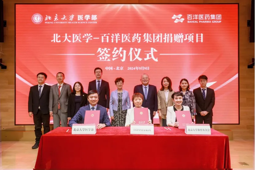 9月9日,百洋医药集团捐赠项目签约仪式在北京大学医学部科创中心成功举办,将进一步支持北大医学临床医学研究、发展建设等工作。百洋医药集团董事长付钢校友、科研管理副总裁李丽华,北京大学常务副校长、医学部主任、中国工程院院士乔杰,医学部副主任肖渊、王嘉东,教育基金会副秘书长耿姝,凯斯利康科技有限责任公司董事长张其军和百洋医药集团嘉宾、医学部师生等出席。医学部校友办暨基金办主任孙莉莉主持仪式。