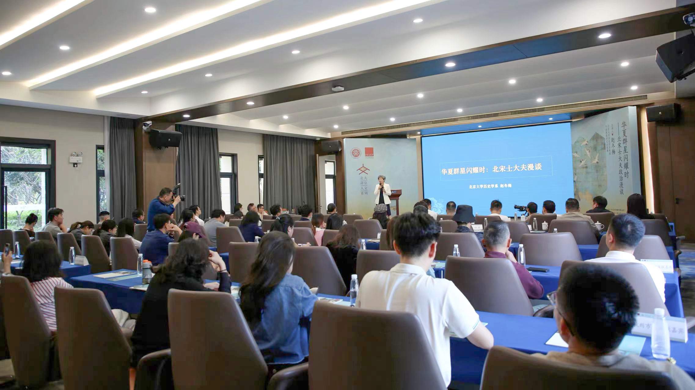 10月11日下午,“北大讲堂人文系列”宋史专场讲堂《华夏群星闪耀时——北宋士大夫政治漫谈》于钱塘江畔的北大信息技术高等研究院(以下简称北大信研院)国际学术交流中心顺利举行。本次北大讲堂人文系列活动是在杭州市、萧山区各级相关单位的大力支持下,由北京大学教育基金会、杭州市工商联、北大信研院联合主办的学术盛会,是落实北大与浙江省校合作协议精神的重要内容,也是推动北大人文学科服务地方发展战略的又一实践。