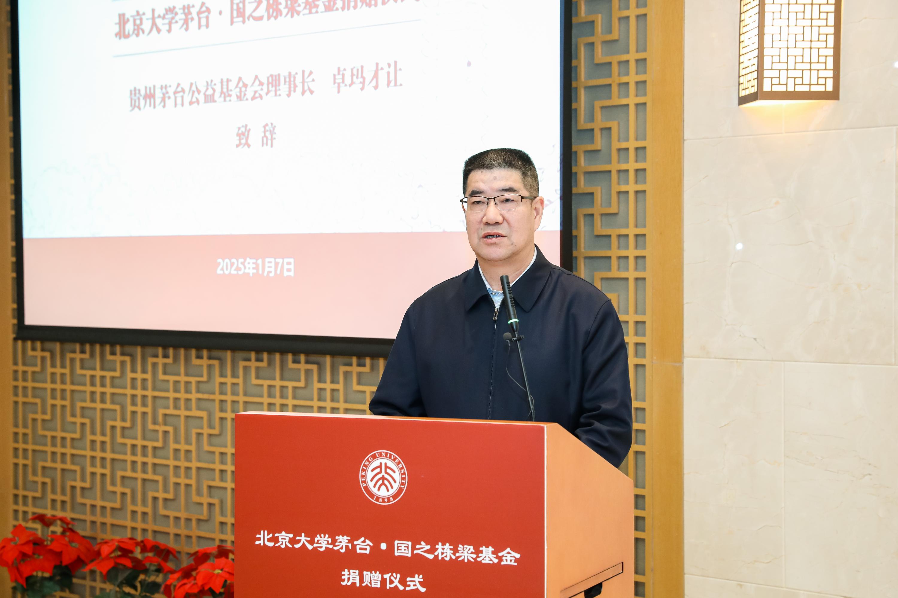 卓玛才让介绍了茅台集团和茅台公益基金会开展的公益事业,回顾了茅台集团与北大的深厚渊源。他指出,茅台集团始终心怀国之大者,关爱国之栋梁,希望通过此次捐资,更好地推动中国考古学科的发展和文化遗产的传承保护,助力中华民族优秀传统文化焕发光彩,也希望携手培育好国之栋梁,期待更多北大学子眼里有光、心中有梦,永远心怀理想,不坠青云之志,早日成为国家和民族所需的栋梁之才。