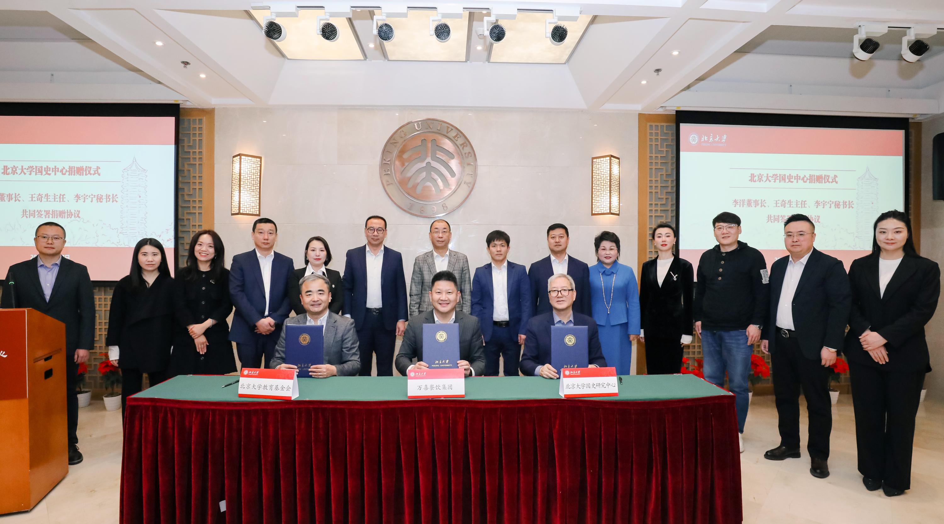2月27日,北京大学国史中心捐赠仪式在北京大学教育基金会北大之友报告厅举行。万喜餐饮集团捐资支持北京大学中华人民共和国史研究中心(以下简称“国史中心”)教育事业的发展,推动国史中心开展史料征集、国史研究、人才培养、国史博物馆设施建设等工作。